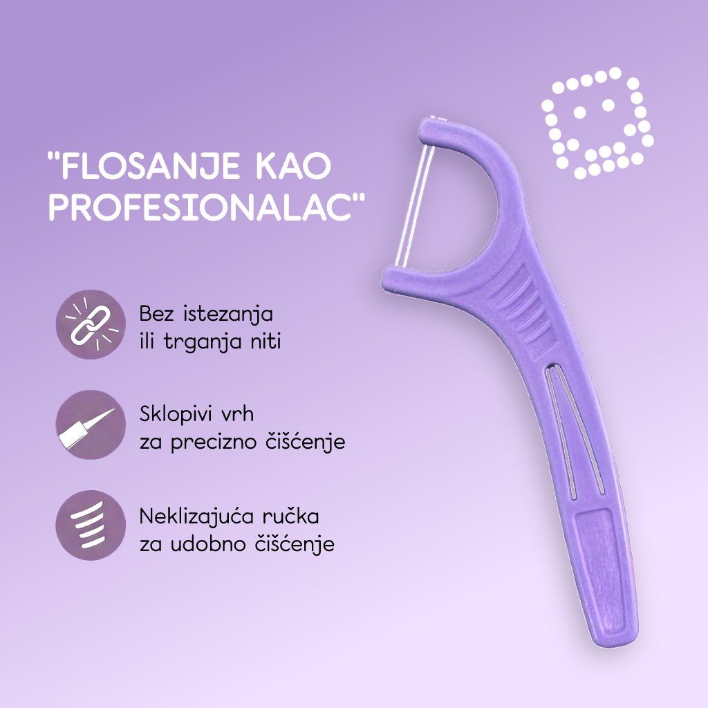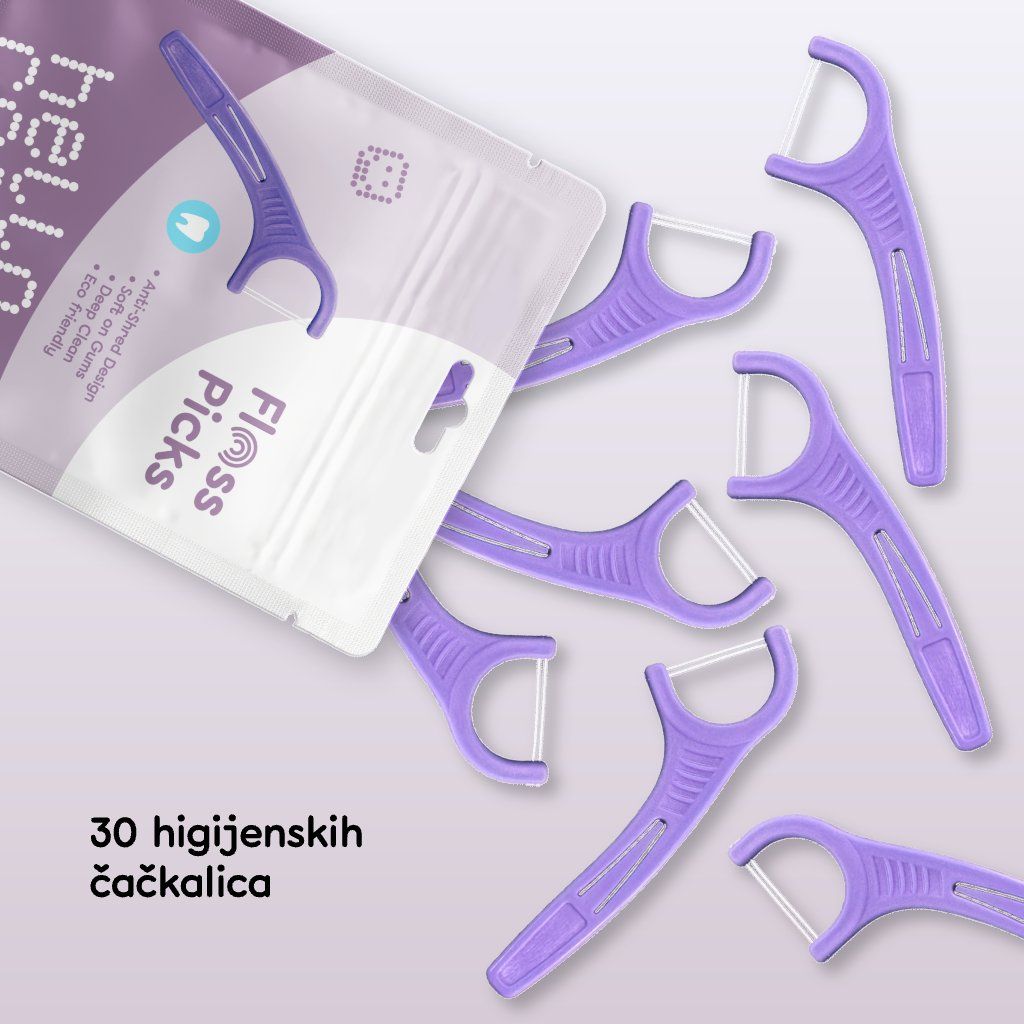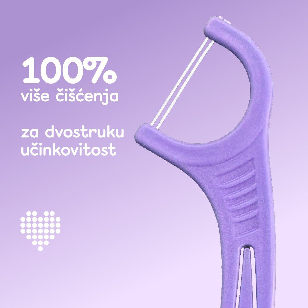 Na mjestima do kojih četkica ne dopire, važna je redovita njega. Dentalne čačkalice s koncem učinkovito uklanjaju ostatke hrane i plak između zubi te pomažu održavati zdrave desni i svjež dah svaki dan.
