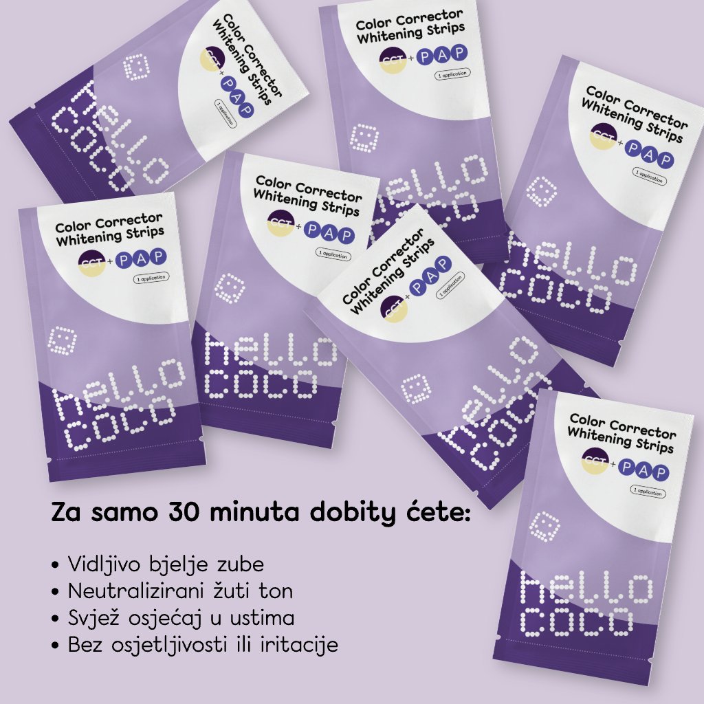 Tradicionalno, bijele trake svoj sastav temelje na peroksidu, što može povećati osjetljivost zuba. PAP trake "hello coco" umjesto toga koriste recepturu temeljenu na PAP-u bez osjetljivosti.